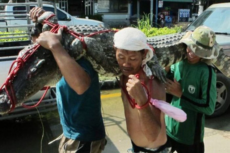 Akibat banjir yang terus berkepanjangan di Thailand, sejumlah buaya di kabarkan lepas. Ini bukan buaya darat loh, ini buaya benar-benar. Kalau tidak percaya silahkan lihat foto-fotonya berikut ini.